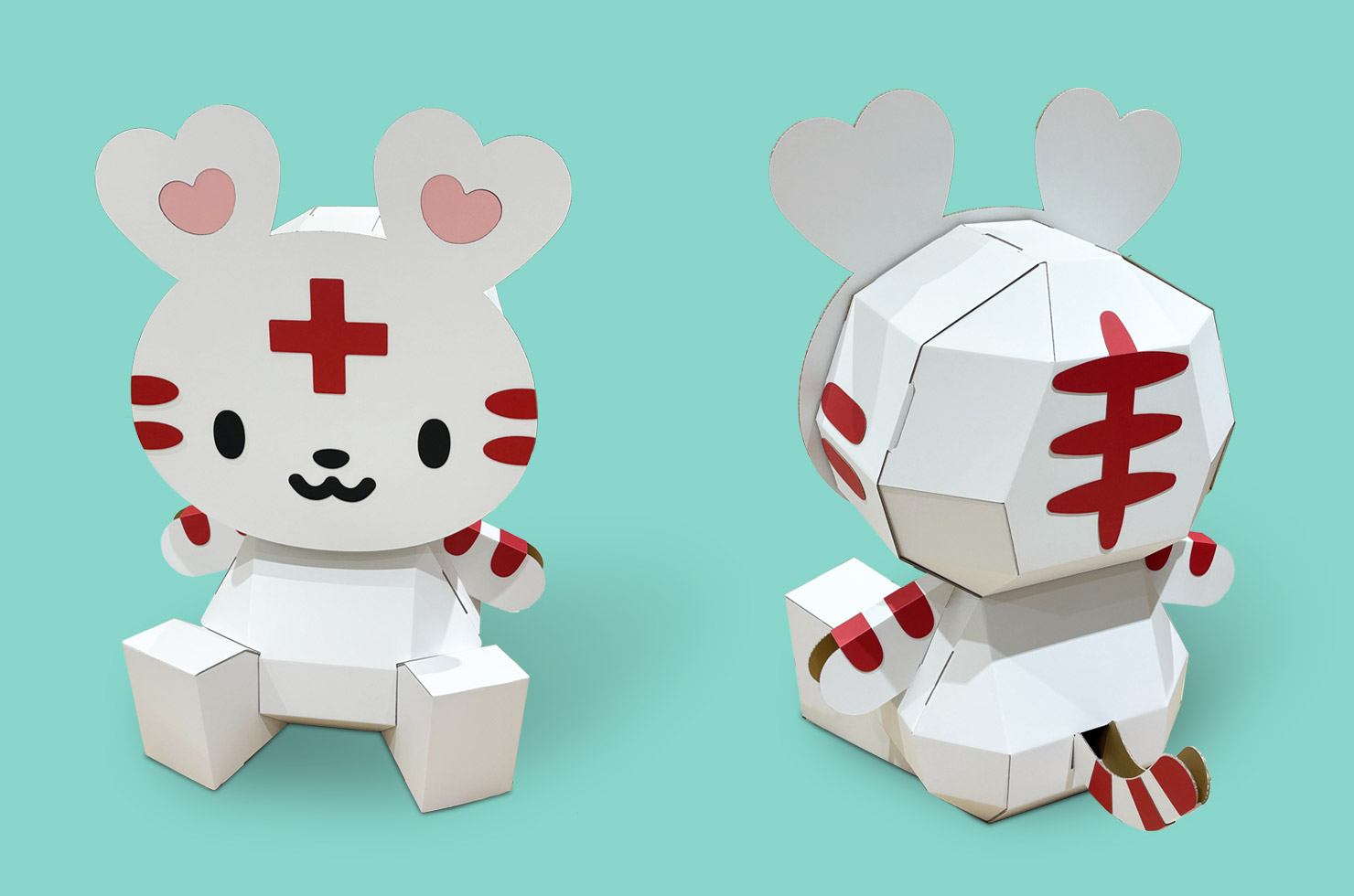 株式会社日赤サービス様よりご依頼をいただき、日本赤十字社本社様のエントランスに飾る、段ボール製「ハートラちゃん」のオブジェを制作させていただきました。