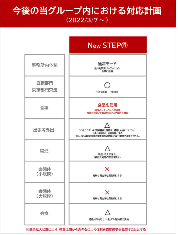 当社グループ内における今後のコロナ対策について(New STEP 17)