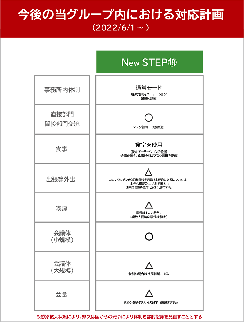 当社グループ内における今後のコロナ対策について(New STEP 18)