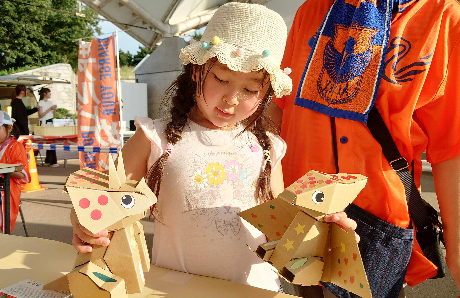アルビレックス新潟のホームゲームで開催される『水と光の夏フェス』のイベントの一つとして、「森井紙器工業 presents おすわりきょうりゅうを作ろう!」が開催されます。