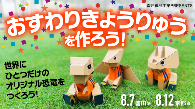 当社協力『森井紙器工業 presents おすわりきょうりゅうを作ろう!』開催(8月7日・12日)