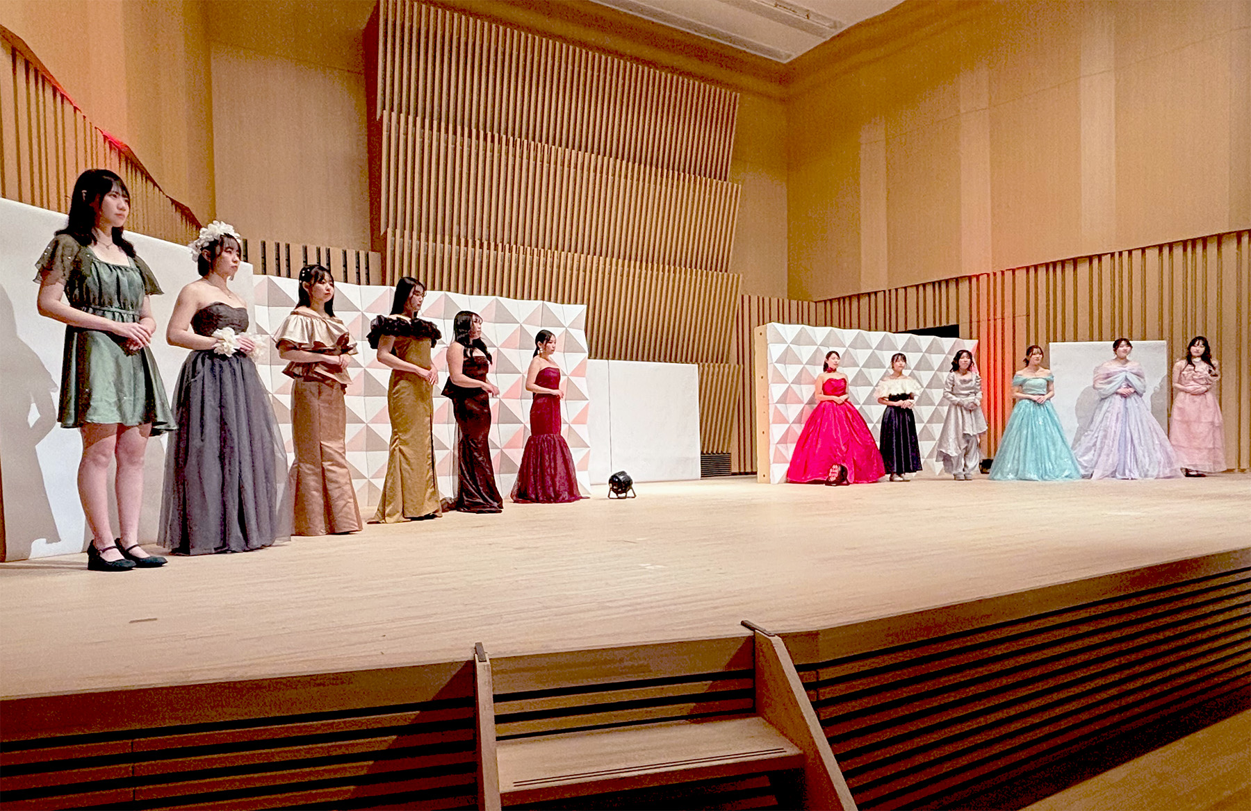 森井紙器工業は2025年2月23日(日)、山形県鶴岡市の「荘内銀行本店ホール」にて開催された『シルクガールズコレクション』の舞台装飾の一部を協力させていただきました。