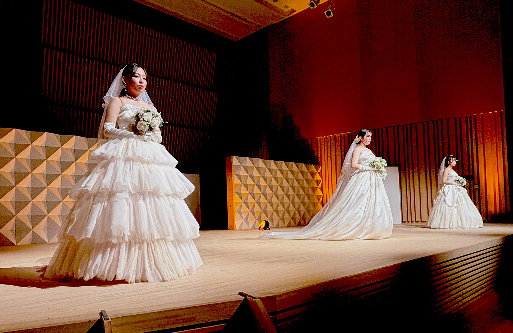 生徒さんたちが製作しプロデュースした、とてもきらびやかなドレスと、プロジェクションマッピングのコラボが織りなす素敵なファッションショーとなりました。