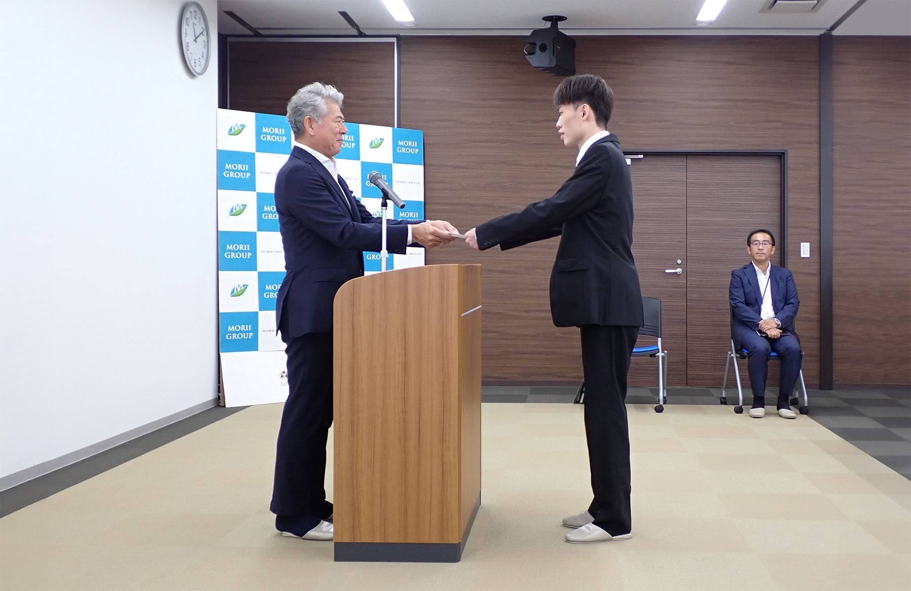 森井紙器工業では、10月1日に内定式を行い、2名の内定者を迎えました。