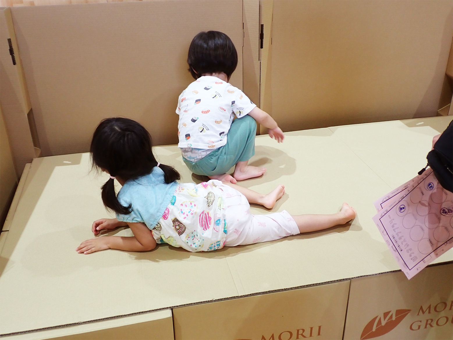 「遊びを通じて学ぼう防災!」をテーマに、災害時の歯磨きや食事について考えたり、ダンボールのベッドやトイレの体験をしたりしながらスタンプを集めていくイベントです。