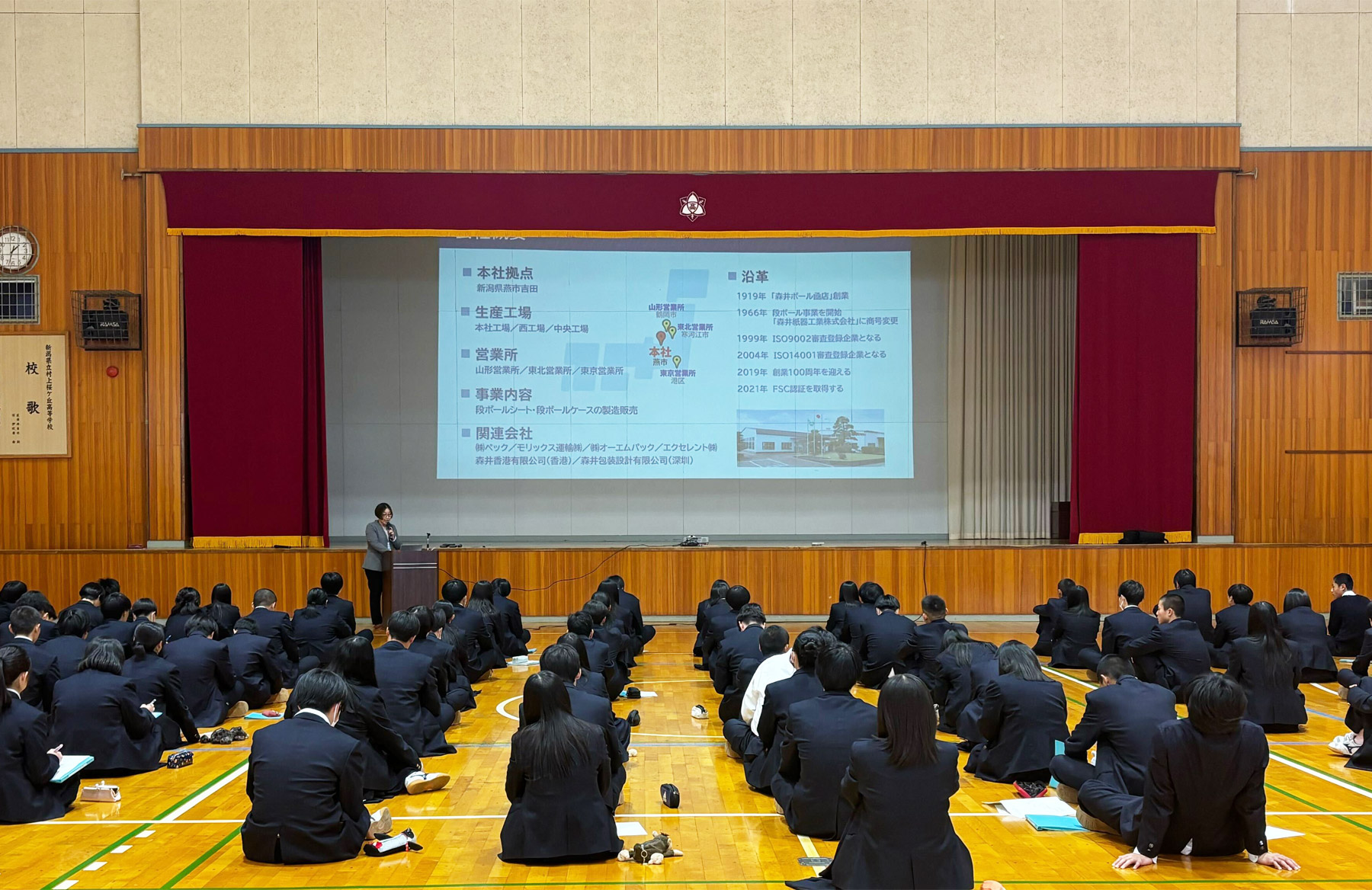 森井紙器工業は、2025年11月12日(水)に新潟県立村上桜ケ丘高等学校で防災に関する講義を行いました。