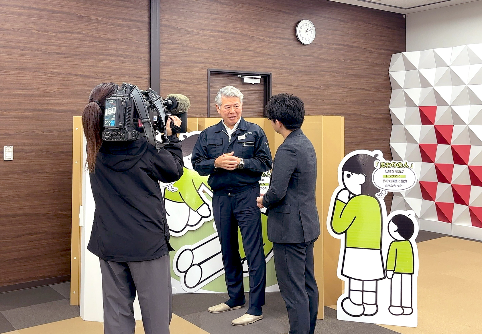 取材では、森井社長がインタビューに応じられたほか、当社の防災に関する取り組みに加えて、
