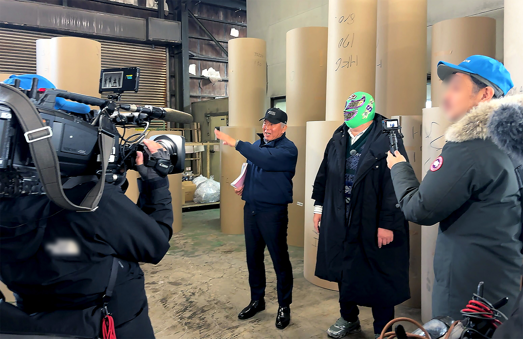 1月15日、BSN新潟放送の人気バラエティー番組「水曜見ナイト」内コーナー『特命係長・笹野仁』の取材で、笹野仁役のスーパー・ササダンゴ・マシン様が当社に来社されました。