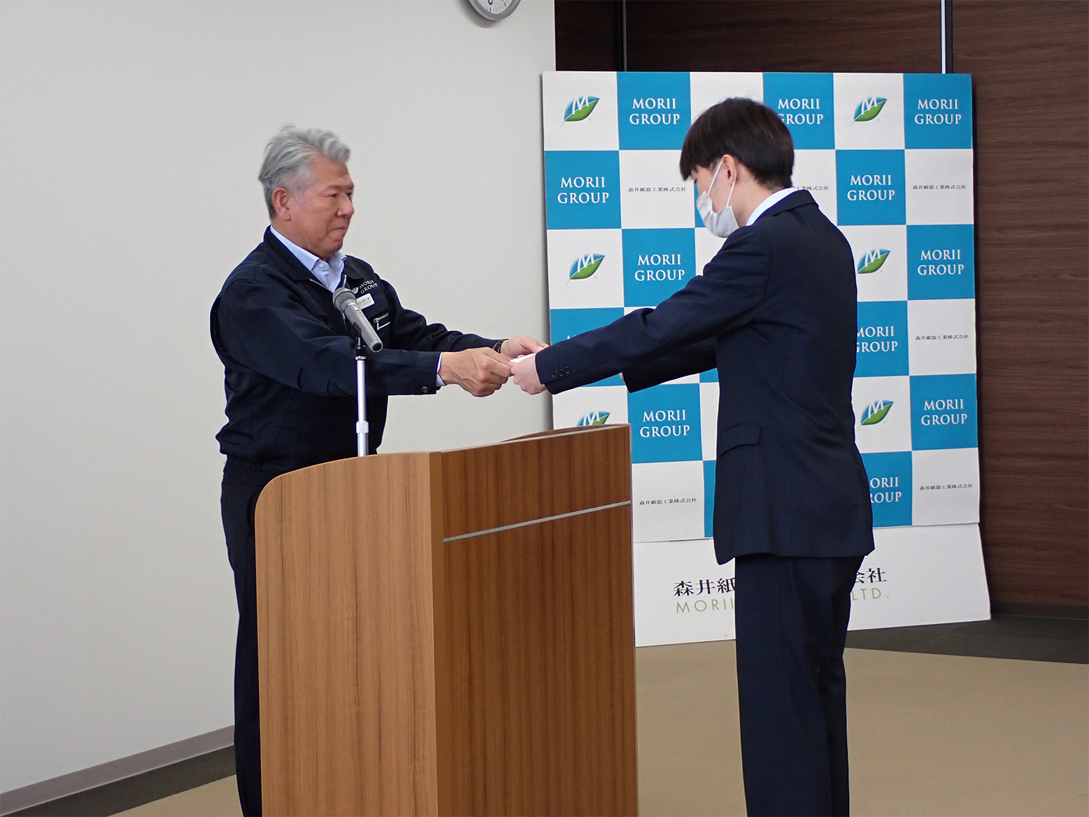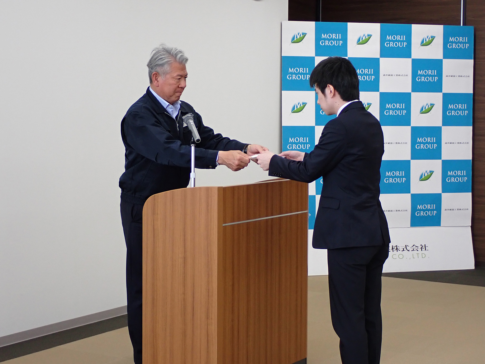 森井紙器工業では本日4月16日、新入社員2名の辞令交付式を行いました。