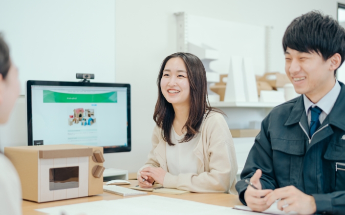 お客様のアイデアを具体的な形にするため、弊社スタッフが知識と経験でサポートいたします。また、極小ロットでの生産や、中国での段ボールパッケージ・緩衝材の生産など、ご相談にも柔軟に対応いたします。