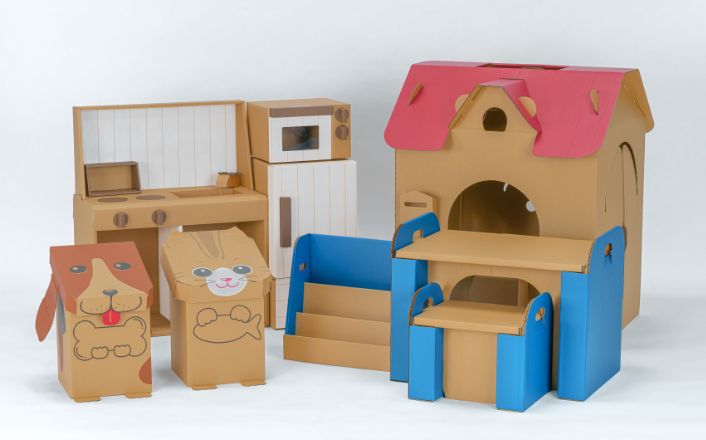 - 動物型、家型、家具など、自由なアイデアを段ボールで形にします。